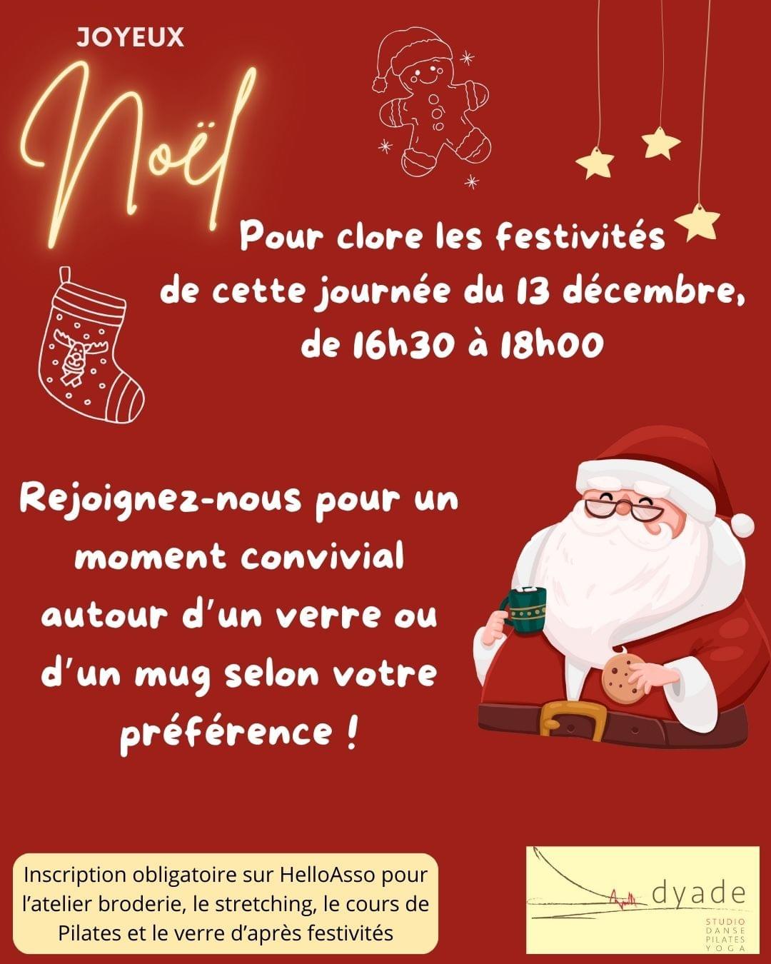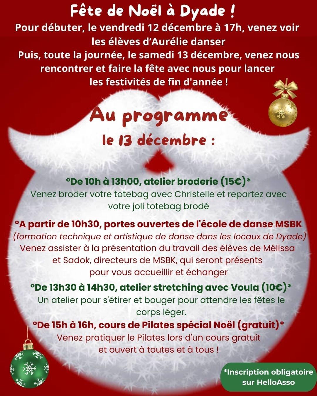 Inscriptions sur HelloAsso via le lien suivant : Je m'inscris à la fête de Noël de Dyade !